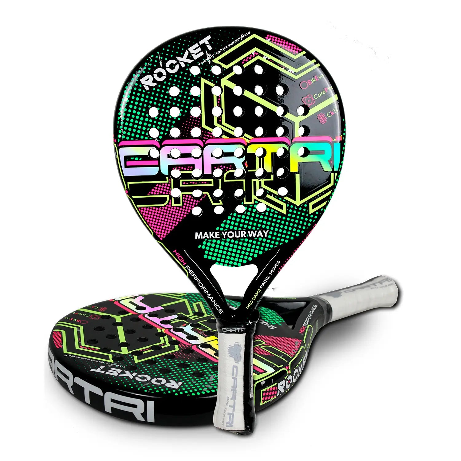 Cartri Rocket är ett utmärkt padelracket för dig som vill ha ett stabilt, bekvämt och kontrollerat racket. Det passar särskilt bra för nybörjare eller motionärer som vill utveckla sin teknik utan att offra spelkänsla. Med sin låga balans och runda form erbjuder den stor tolerans och ett tryggt grepp om spelet, både vid nät och från baklinjen.